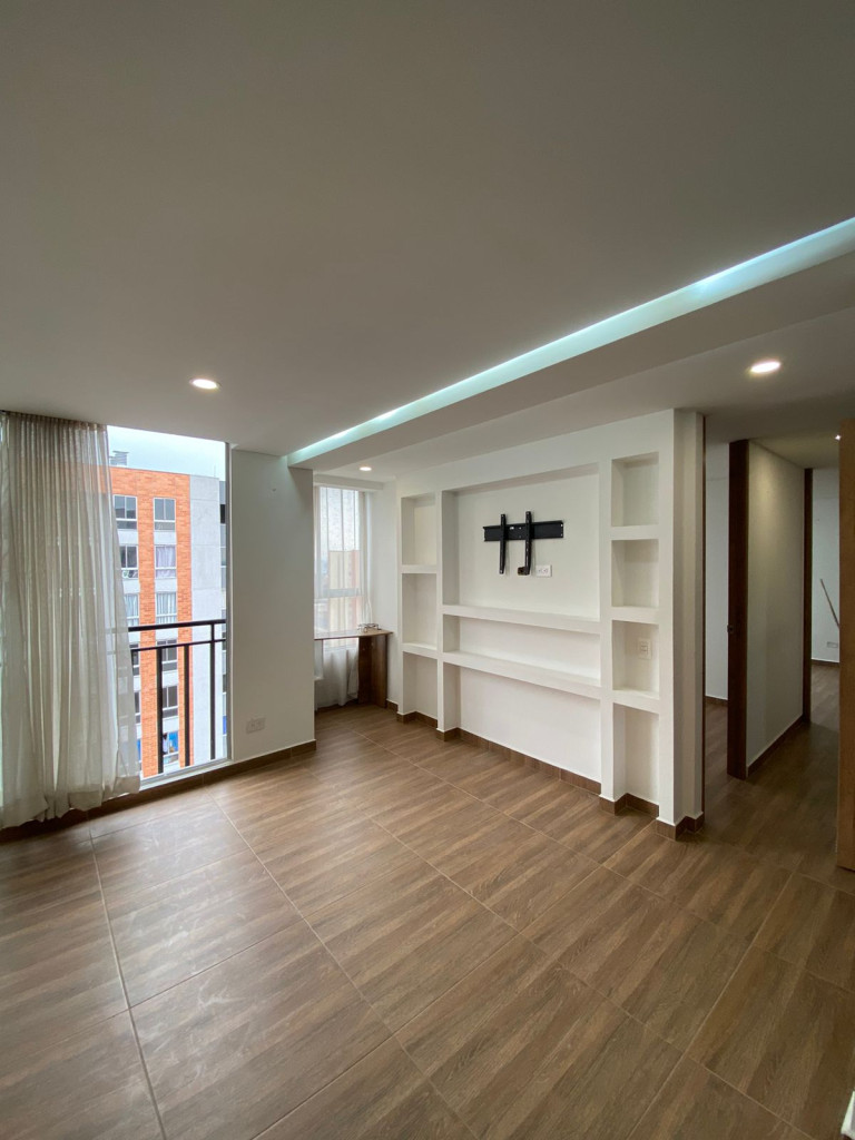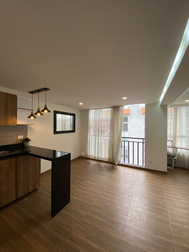 Descubre este acogedor apartamento de 2 habitaciones y 1 baño en una ubicación privilegiada. Con una iluminación natural que resalta sus 46 metros cuadrados, este espacio cuenta con sala-comedor, estudio, cocina integral y zona de ropas. Además, ofrece comodidades como ascensor, gimnasio, vigilancia privada 24/7 y zona infantil. Disfruta de una vista panorámica y acceso a zonas verdes, sauna y parqueadero para visitantes. Ubicado en una zona residencial cerca de supermercados, colegios y parques, con fácil acceso a transporte público. ¡Vive la experiencia de confort y seguridad que este lugar ofrece! Contáctanos al 3124411135 para más información.